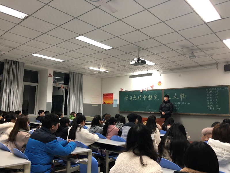 2月26晚7点2018会展策划与管理1班开展了一次以学习感动中国先进人物为主题的班会,此次活动由班长组织,现场氛围良好,同学们积极响应。