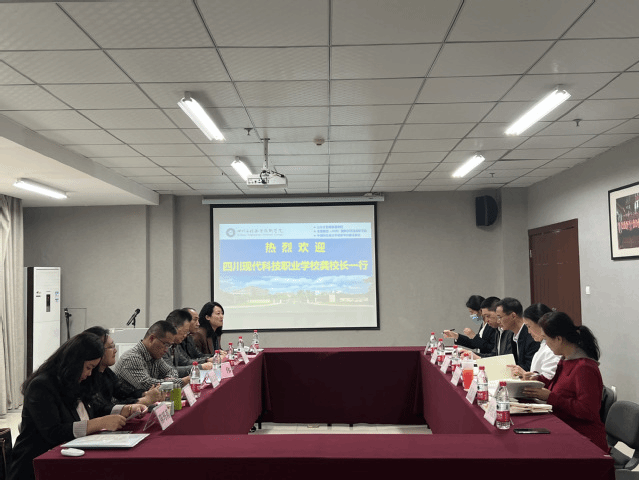 2022年4月19日下午,四川现代科技职业学校龚谷校长一行来我系考察交流。旅游管理系主任张伟、系党总支书记张志友、副主任杨惠玲等热情接待龚校长一行,陪同来访教师们参观了旅游管理系教学办公区、旅游实训中心的文化建设。