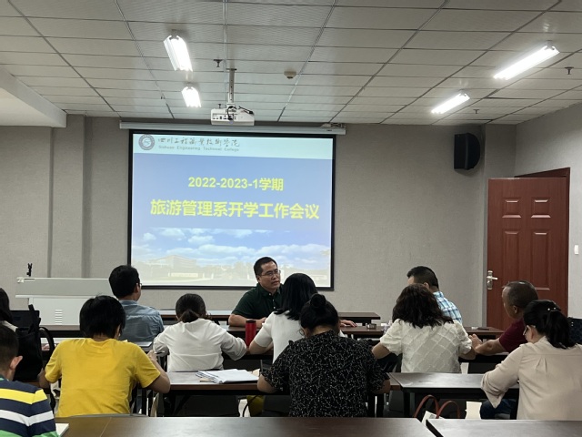 2022年9月2日上午,旅游管理系在旌湖尚品酒店会议室召开了新学期教职工大会,拉开了2022-2023学年新学期工作的序幕。