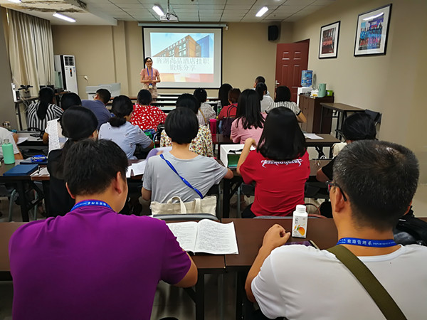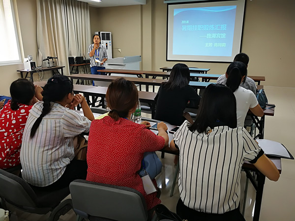 为了更好的向全系老师传达企业最新理念,了解市场对人才的需求情况,2018年9月4日下午3点,我系教师暑期挂职锻炼分享会在我院旌湖尚品酒店会议室进行。朱娟老师就在旌湖尚品酒店的常规工作做了介绍,并从责任落实到人和薪酬制度改革等管理工作方面提出了感想;陈玛莉、王芳老师就在旌湖宾馆的锻炼做了介绍,并对酒店专业学生培养方向提出建议;苏丙杰老师就在成都旅游导游协会、环球国际旅行社所见所感做了介绍,并指出企业对学生的能力要求。