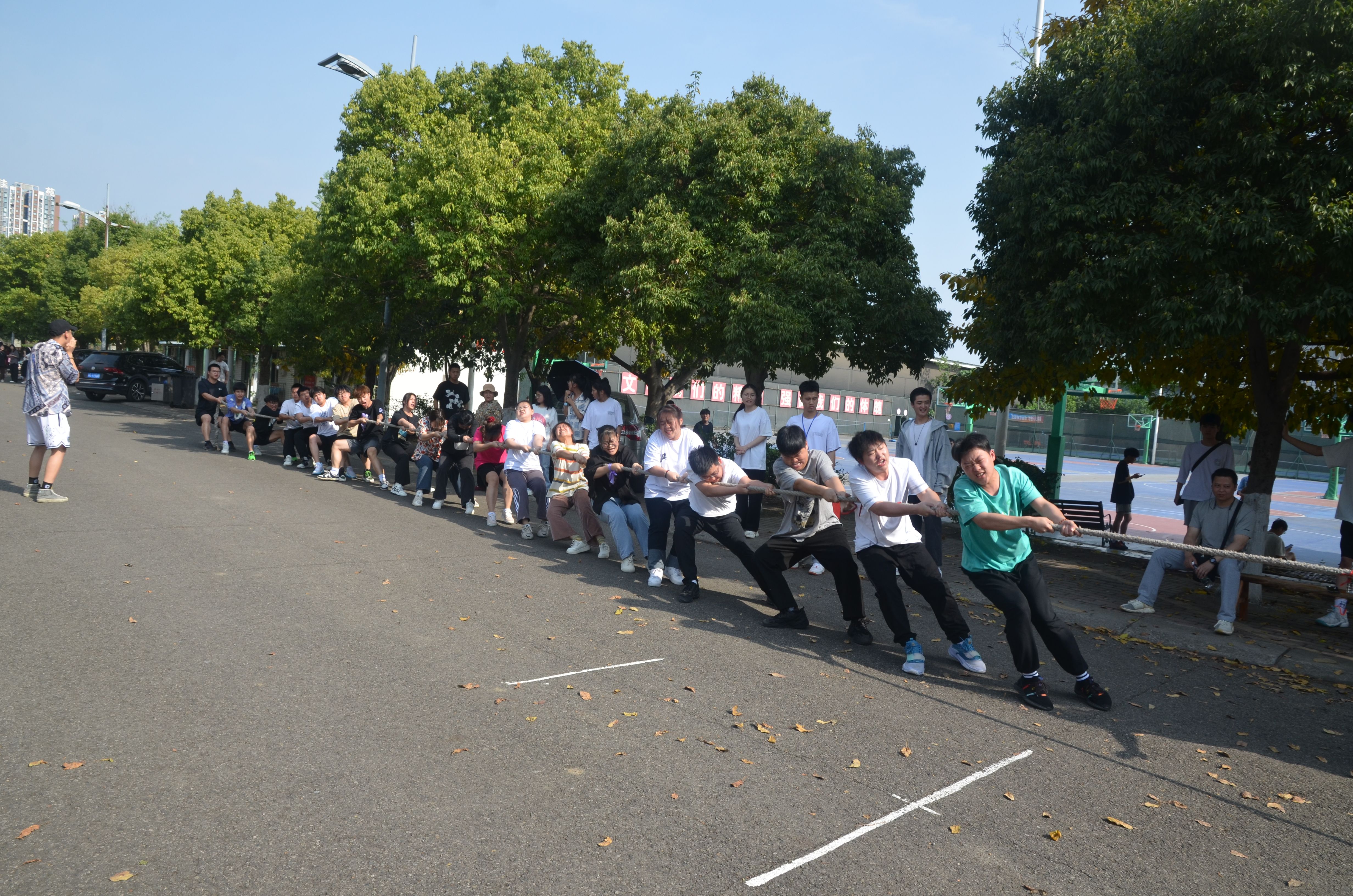 4月25日下午3点50分,拔河比赛决赛于篮球场旁一场地拉开帷幕。我系对阵交通工程系,经两轮激烈的角逐后,成功赢得本次拔河比赛的第七名。