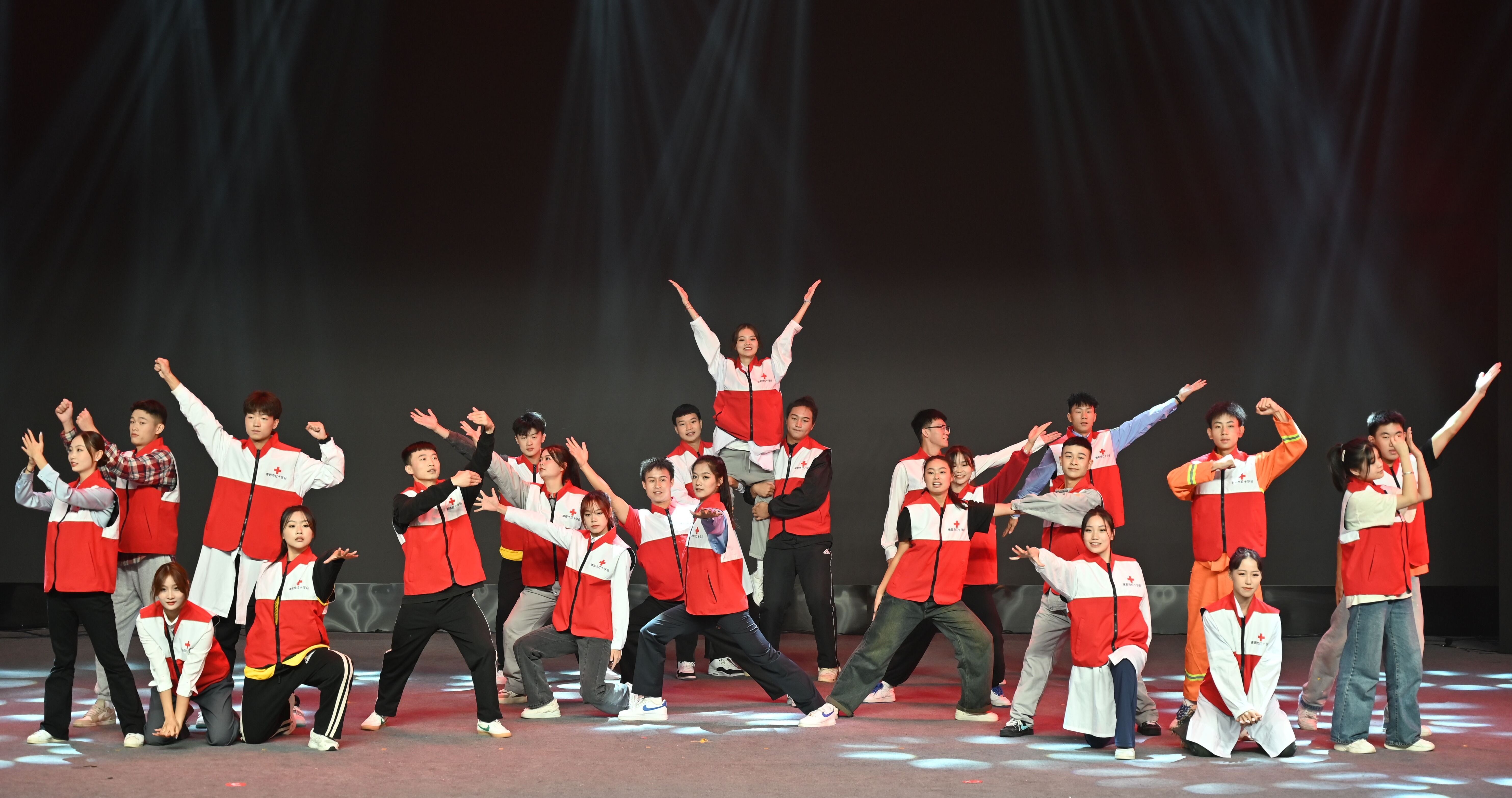 在应急救护大赛决赛中,各个选手沉着应对,理论知识竞答、主题演讲、场景演练,选手们一路过五关斩六将,大展身手。比赛结束后,灯光渐暗,我系24名身着不同职业装的舞蹈演员鱼贯上场,展现了一场精彩的情景舞蹈。舞蹈表演内容层次饱满,包含街舞、情景表演、手势舞等元素,音乐由紧张激烈转为温柔抒情,最后在青春活力,充满力量的歌声中将比赛的氛围推到高潮,获得大家的掌声阵阵。