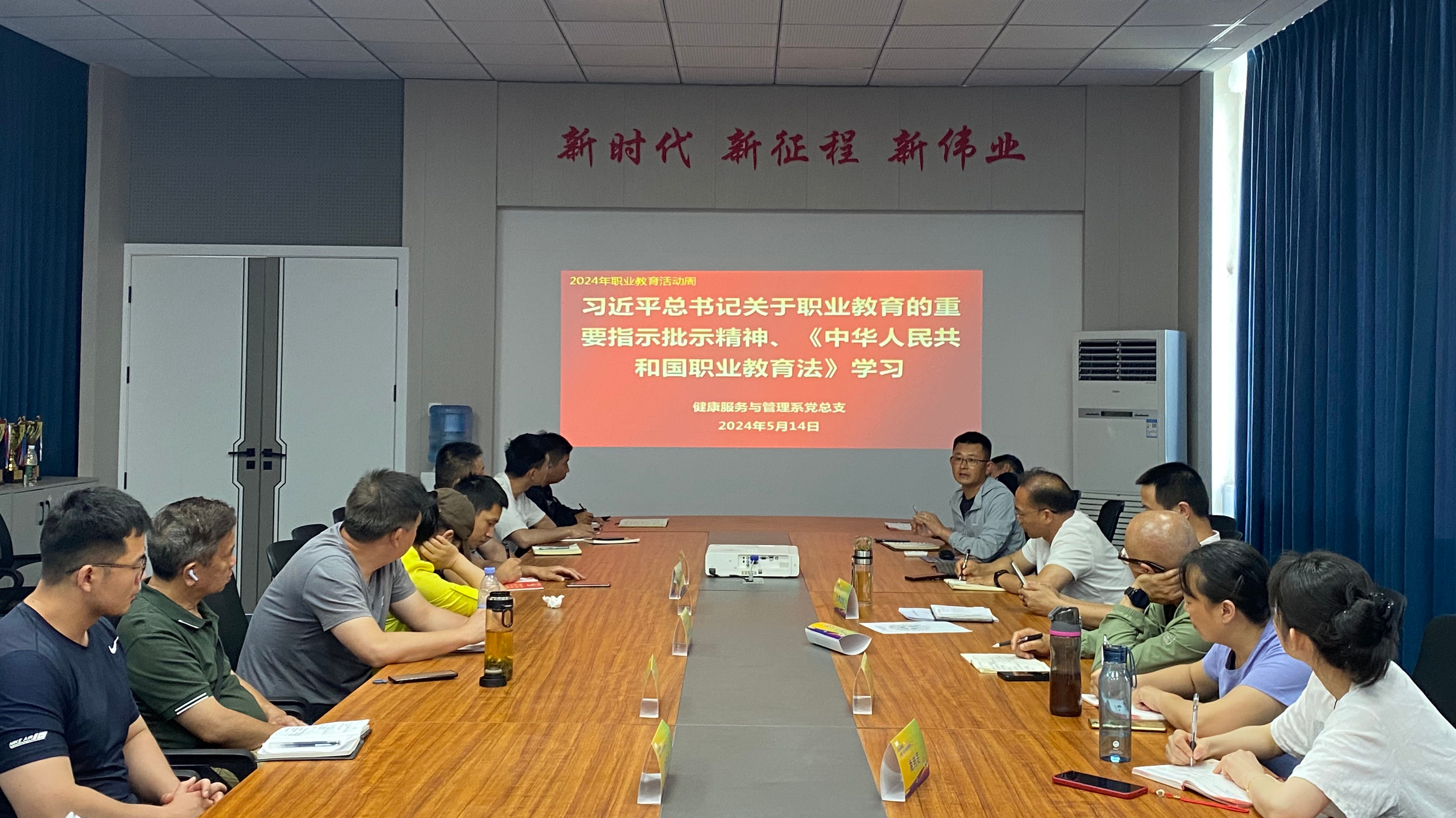 2024年5月14-16日,健康服务与管理系党总支组织全体教师开展2024年职业教育周学习活动。大家集中学习了习近平总书记关于职业教育的重要讲话和重要指示批示精神和《中华人民共和国职业教育法》、《四川省职业教育条例》、《四川省职业学校学生实习管理实施细则》等法规、条例,并结合系部专业建设发展展开了系列讨论。