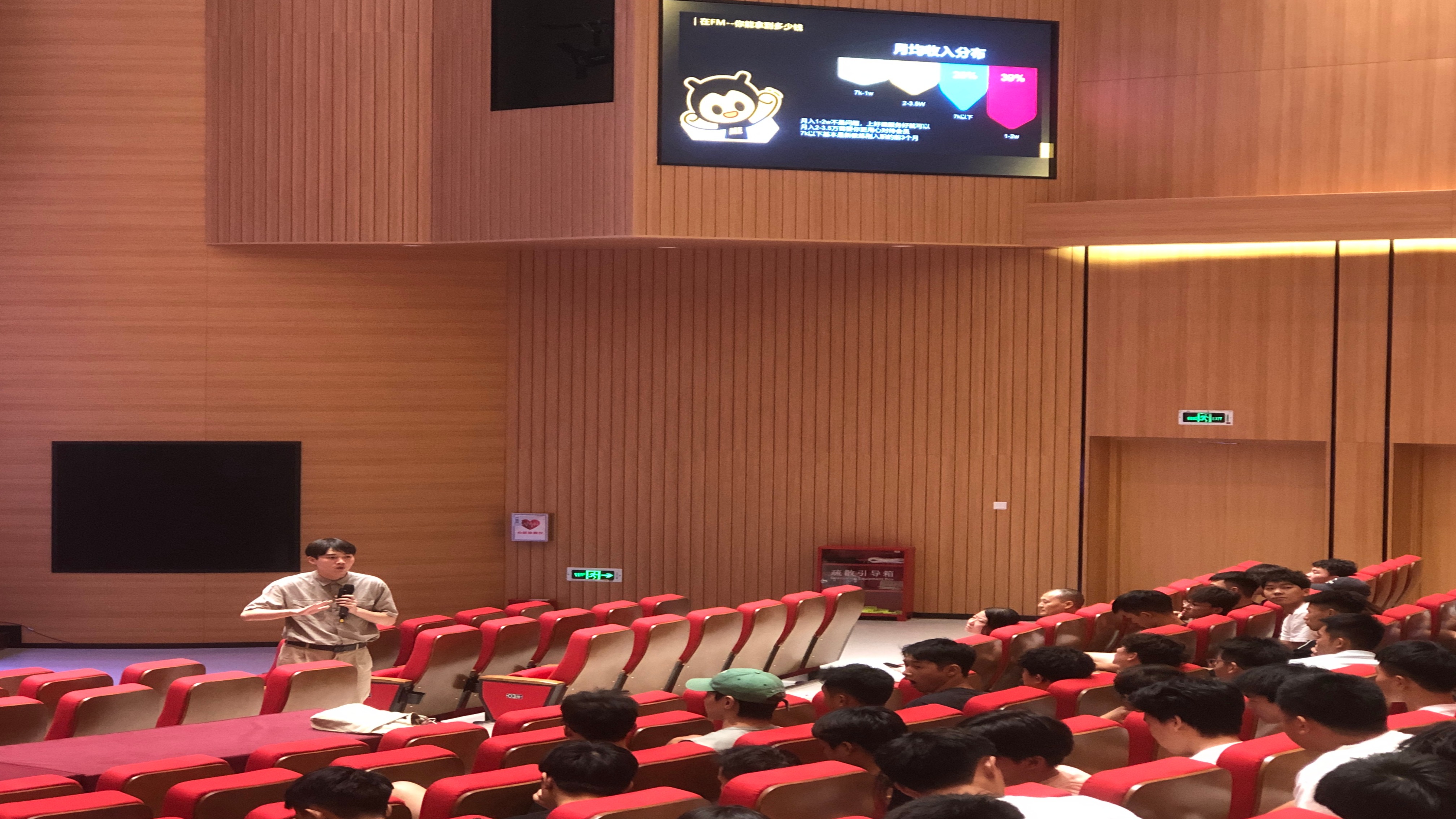讲座主讲人寒山来自杭州乐刻网络技术有限公司,作为公司校招负责人以丰富的行业经验,通过鲜活的案例和前沿视角,为同学们剖析了健身行业的运营模式、市场需求动态、技术创新亮点及未来发展趋势,为学生们打开了行业认知的新窗口。互动环节更是高潮迭起,学生们踊跃提问,寒山耐心地逐一解答,不仅解决了学生们的疑惑,更提供了宝贵的职业规划建议,现场气氛热烈。