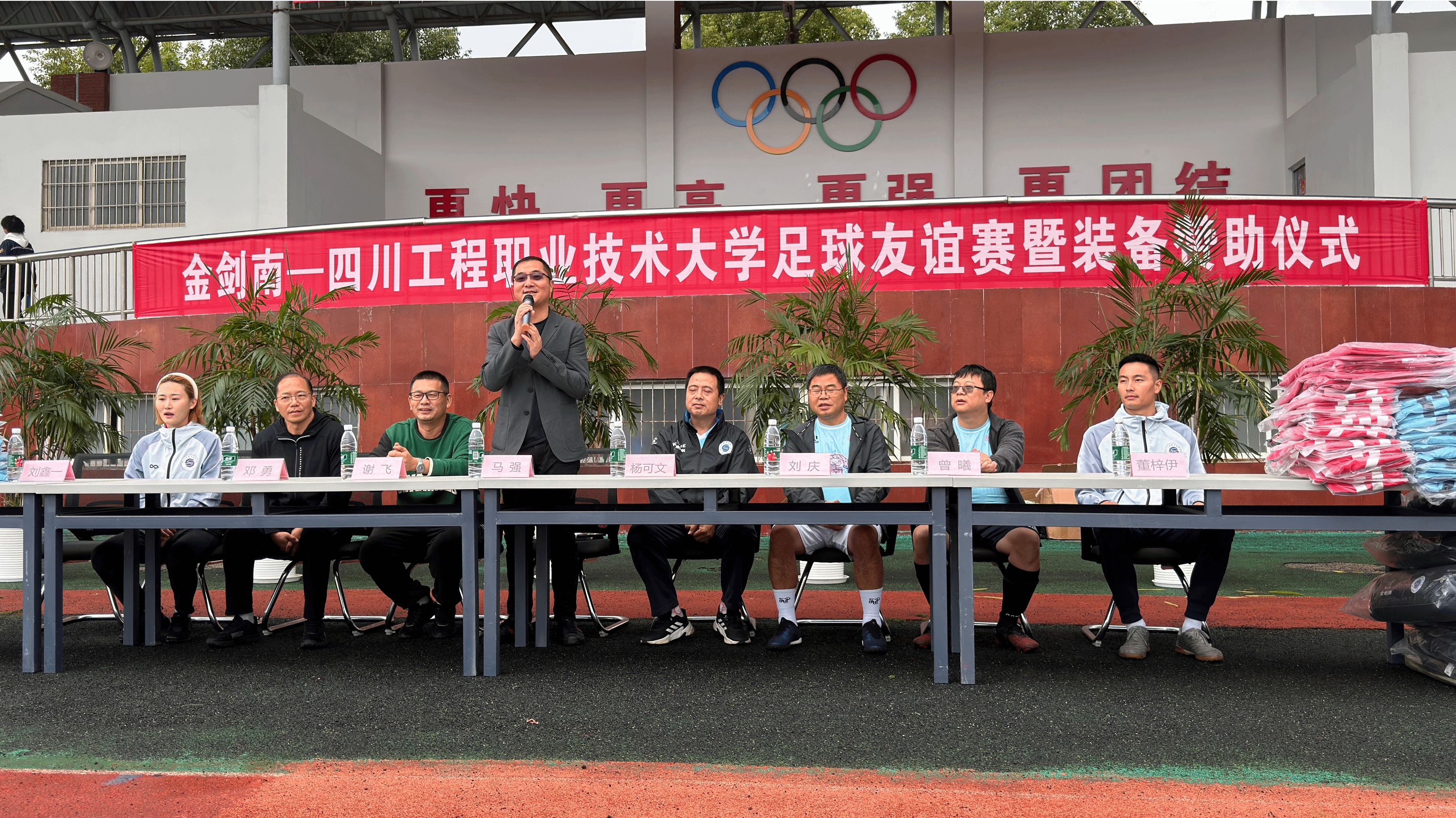 在仪式上,体育与健康学院院长杨可文在致辞中对金剑南的赞助表示衷心的感谢。他表示:金剑南的赞助不仅为球队提供了优质的训练装备,更重要的是为球队注入了新的活力和信心。川工大足球队将不负众望,继续努力训练,提高技战术水平,争取在未来的比赛中取得更好的成绩。