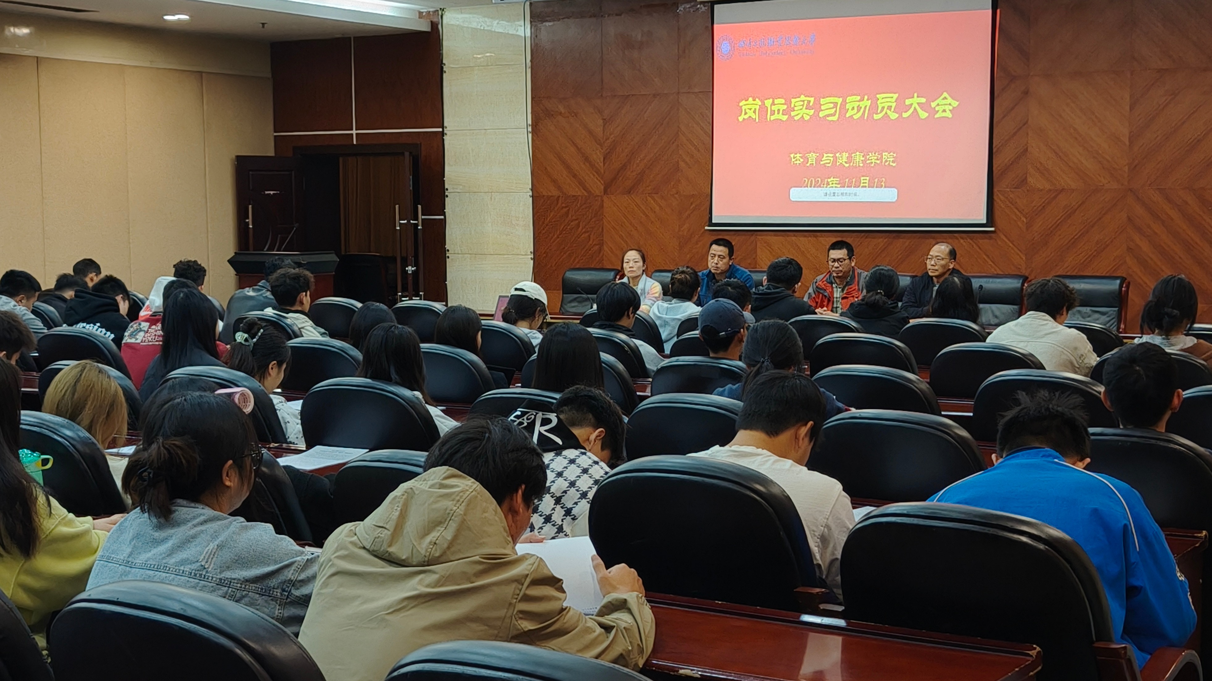 为了让即将步入实习岗位的2022级学生深入理解岗位实习重要性、明确实习目的及具体要求,体育与健康学院于2024年11月13日在图书馆107会议室举办2022级学生岗位实习动员大会。