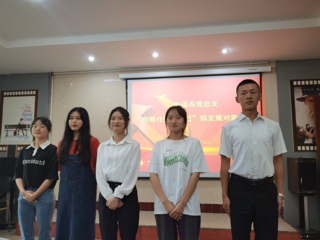 为严把党员发展的“入口关”,进一步提高拟发展对象的政治素质和党性修养,端正入党动机,外语系党总支于2022年5月10日下午召开“向党介绍我自己”拟发展对象答辩会。外语系党总支书记王春焱、主任苏玉仙,各师生融合党支部书记、支委、入党联系人、团总支书记、班导师、辅导员担任评委。各班团支书和入党积极分子、群众代表现场旁听。