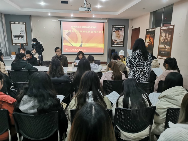 2021年12月23日下午,外语系学生党支部在二教语言中心举行党员发展大会。大会由学生党支部书记朱英老师主持,出席此次大会的还有学生支部的党员教师、培养联系人和支部预备党员学生、发展对象等。