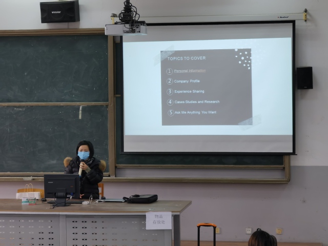 何克会女士介绍了疫情下的行业现状以及外贸工作的一些流程,并对以后同学们对外贸行业工作方向的选择提出了自己的建议,让在座的学生体会到了专业知识的重要性。