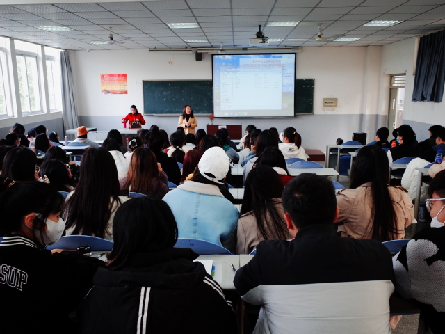 赵秋凤女士先就外贸行业进行了行业介绍及前景分析,让大家对自己以后的就业方向有了大致了解。随后,她带来了如今在外贸行业较为优秀的学姐们的视频,分享了她们的经验以及对同学们的祝愿,同学们深受鼓舞。