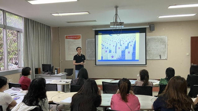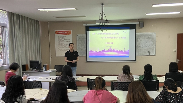6月8日下午,外语系全体教职工在语言中心参加党史学习。本次党史微课授课人,党总支书记王春焱以《这是一片用烈士鲜血染红过的土地——记川陕革命根据地红军烈士陵园》为题,介绍了位于通江县沙溪镇王坪村的川陕革命根据地红军烈士陵园,以及当年奋战在川陕革命根据地红四方面军的丰功伟绩。