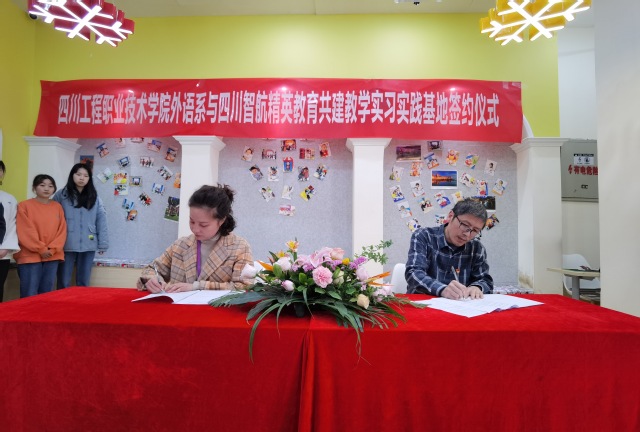 2021年4月15日,外语系与四川智航教育集团共同签署了教学实习实践合作协议。根据协议约定,双方将充分发挥各自优势共建实习基地、共同培养经济社会发展所需要的少儿英语教育教学人才,实现合作共赢。四川智航教育集团德阳校区负责人王雪莲女士、外语系副主任蒋显伦教授、应用英语教研室主任徐阳平副教授以及部分师生代表共同参与本次签约仪式。
