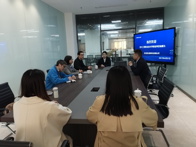 四川顺为智联科技有限公司、四川青创孵化器管理有限公司、德阳龙工场公司相关负责人热情接待,带领老师们参观公司并详细介绍了公司情况及目前在公司进行顶岗实习学生的近况。双方就实习基地建设、学生长期实习模式等进行了深入探讨。