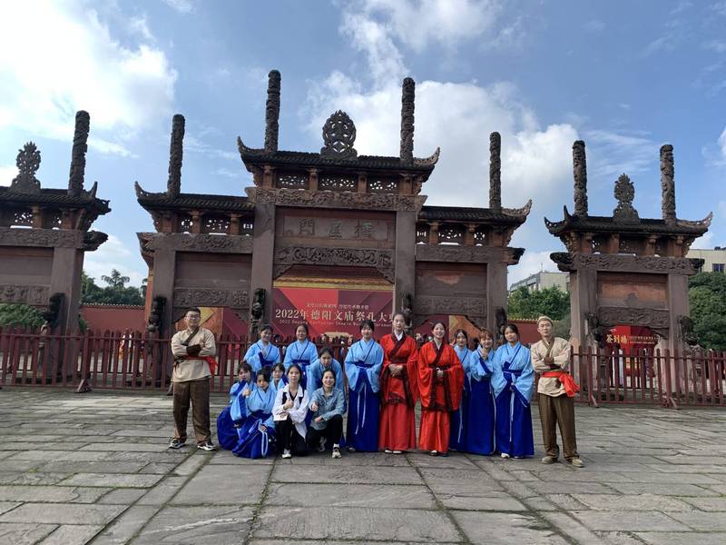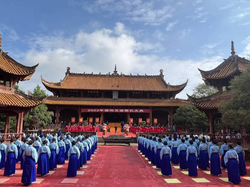 2022年9月28日上午,由德阳市委宣传部指导、德阳市文化广播电视和旅游局主办、德阳市博物馆承办的纪念孔子诞辰2573周年的祭祀活动在德阳文庙隆重举行。我系和旅游系共150名学生参加了本次祭孔大典活动。