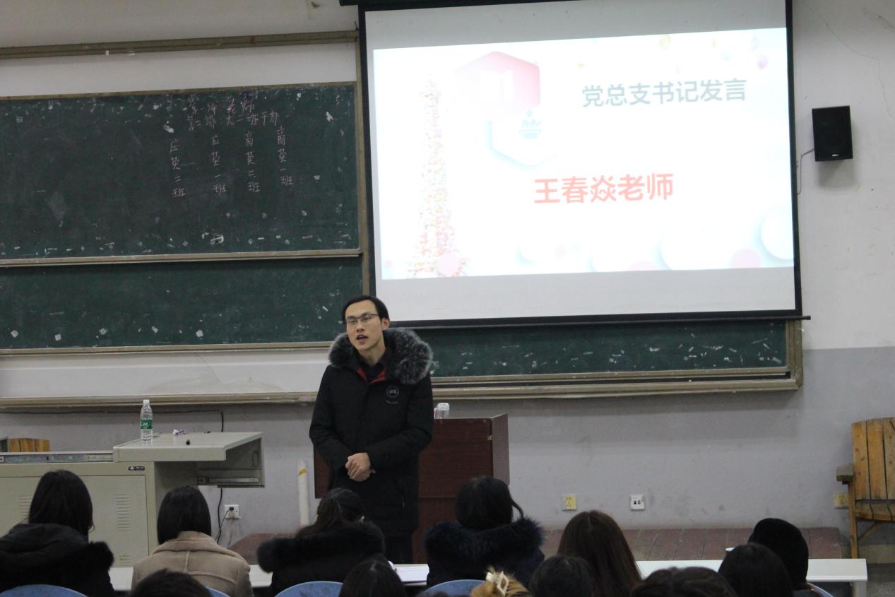 会议开始,由外语系党组织书记王春焱老师发言。他希望各位同学能向获得国家奖学金、国家励志奖学金的优秀学生看齐,以他们为榜样。其次讲到我们的社会、国家离不开优秀学子的建设,希望我们德智体美劳全面发展,学好我们的专业课程,以祖国发展为骄傲,期盼大家为祖国做贡献。最后他讲到这次会议邀请了19级两个先进班集体,让各位同学了解他们是如何为大家做贡献,如何明确树立目标,如何激励自己的。