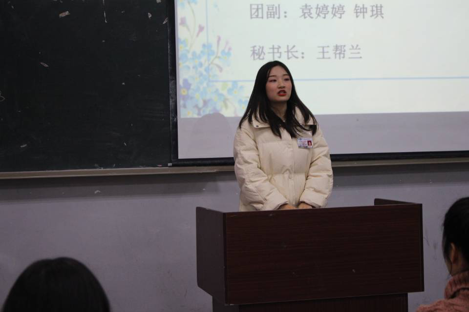 11月26日下午4:30外语系团总支学生分会召开了月末总结及换届大会,王春焱书记、唐蕊老师、学生干部以及大一干事均参加了此次大会,这是第一次与新干事的见面会,也是新老学生干部的换届会。