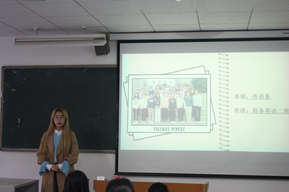 应用英语2班的演讲人李莹萍同学用铿锵有力的声音为我们介绍了一个风华正茂的班集体,不仅积极参与篮球、足球比赛,而且体质健康测试合格率达到了100%,同时也在学习上取得了优异成绩,其中48%的同学通过了英语四级考试,并且在诗歌朗诵大赛、外语系双创大赛、征文大赛等比赛中也取得了优异的成绩。