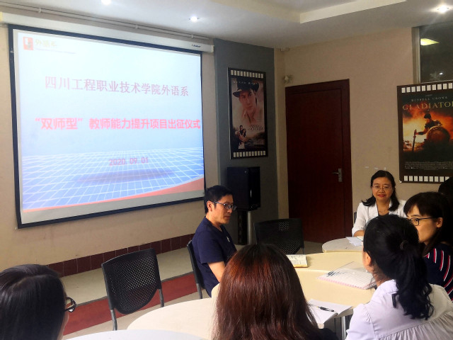 2020年9月1日下午,外语系在语言中心召开“双师型”教师能力提升行动出征大会。会上,外语系苏玉仙主任、王春焱书记、蒋显伦副主任向首批赴企业和机构锻炼的教师进行了动员激励和任务安排。
