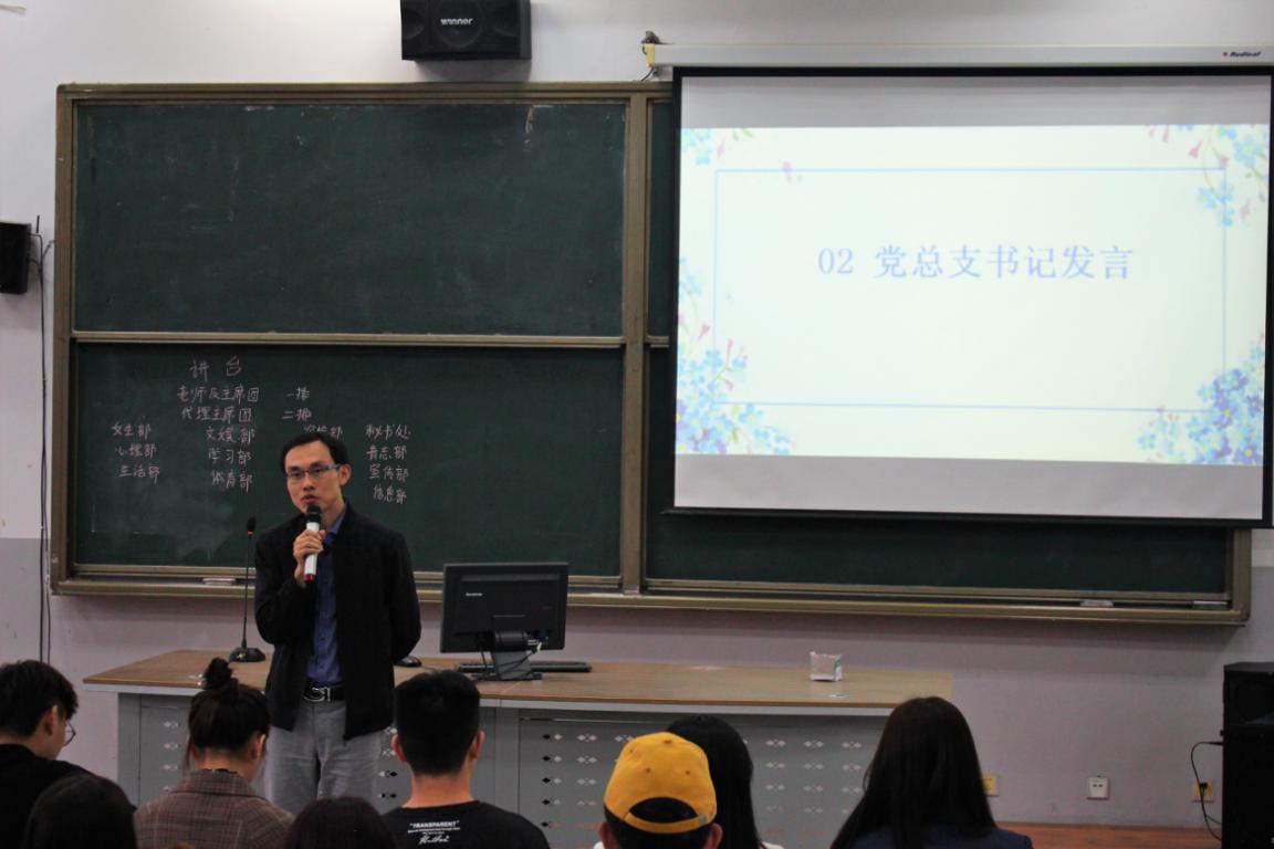 大会开始由王春焱书记讲话。他对一直辛勤付出的18级学生干部表示衷心的感谢,对他们的工作成就和工作态度表示高度的赞扬,同时也提出对19级代理干部们的期望,希望新一届干部们能保持热情,努力工作。