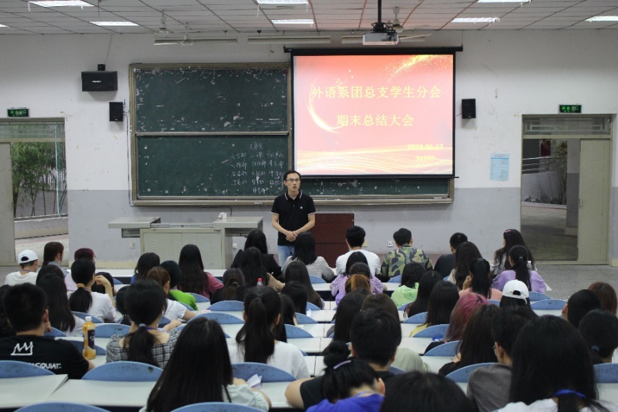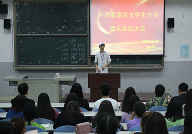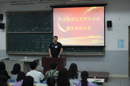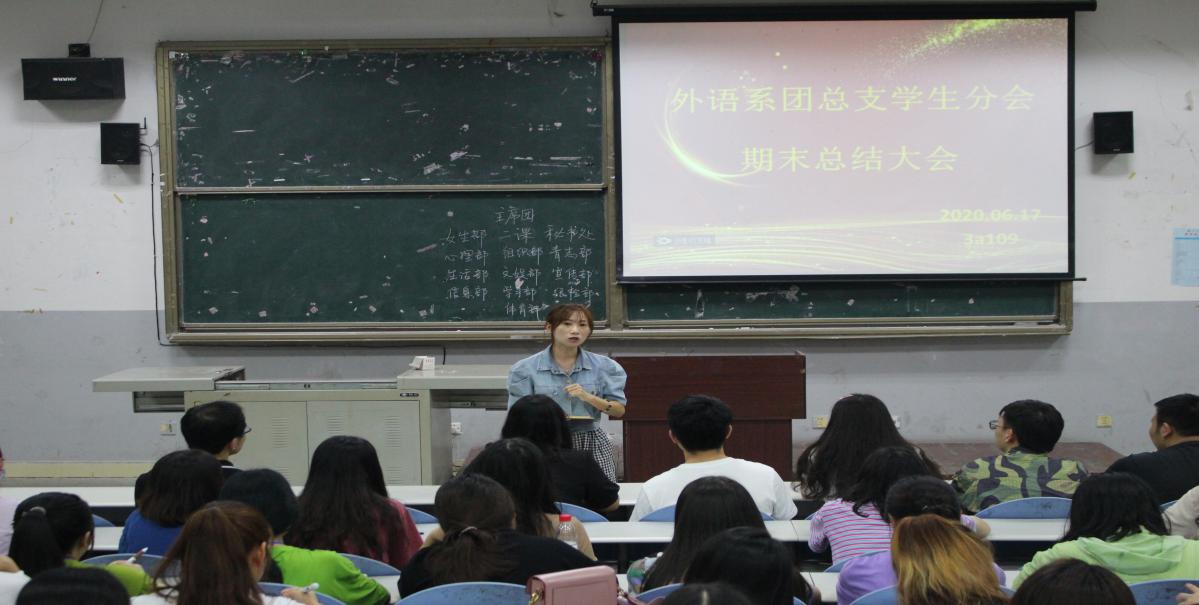 2020年6月17日19时,外语系团总支学生分会于3A109开展了本学期期末总结大会。此次大会由秘书处19级干事王帮兰主持,参会的有外语系党总支部王春炎书记、团总支书记唐蕊老师以及18、19级所有学生干部、干事。