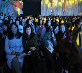 下午6:40,外语系学生会干事组织同学们有序进入校庆会场。此次观看校庆节目不仅有同学们的踊跃报名,唐蕊老师、李君梅老师、邓斯文老师等多位我系老师们也来到现场与同学们一起见证工院辉煌时刻,共同感受我校六十华诞浓厚的喜庆氛围。