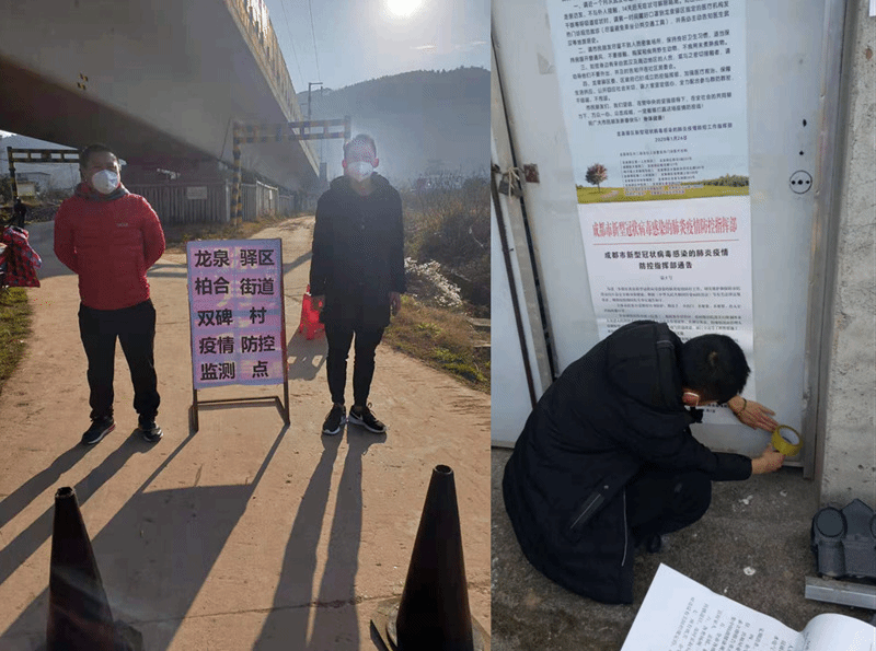 2019级数控技术4班罗志富主动参加成都市龙泉驿区柏合镇双碑村的防疫工作——协助检查来往人员、张贴宣传海报、发放宣传手册、宣传相应法律法规。他说: “疫情不结束,我的工作不结束。服务无终点,奉献无终点。”