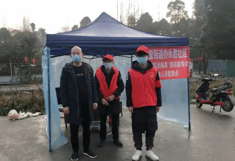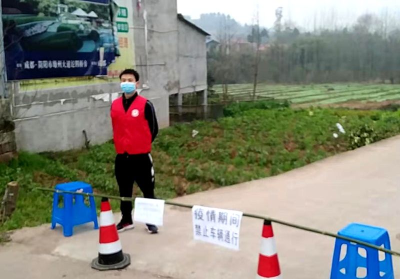 2018级新能源汽车技术2班志愿者樊超在简阳市东溪镇松柏村参加疫情防控值守