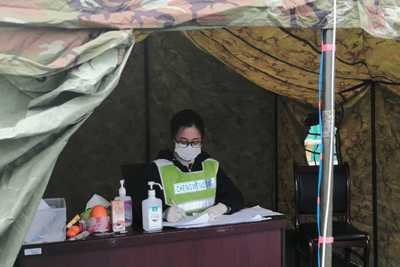 2018级材料成型与控制技术(模锻技术方向)1班肖椰凡,在都江堰市玉堂街道办永胜社区报名担任志愿者。他说:在国家大难面前,自己力量微小,但如果能做些力所能及的事情,把基层的预防工作做好,让社区群众安心,也是很有价值的。