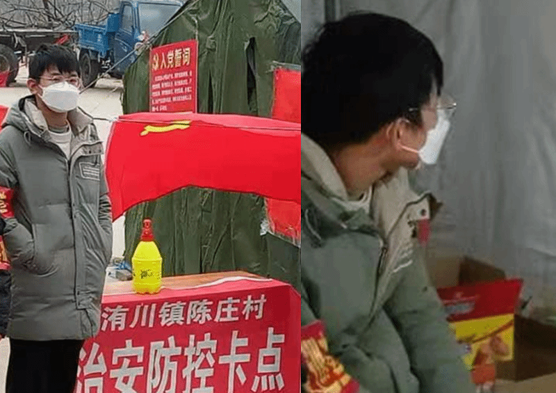2019城市轨道交通机电技术1班的许光耀, 2月10日至今参加河南省开封市尉氏县洧川镇陈庄村的志愿服务队,主要负责村组路口卡点对进出车辆进行消毒,登记外来车辆车牌及核实人员信息,进行居民体温测量,晚上值班进行排查。