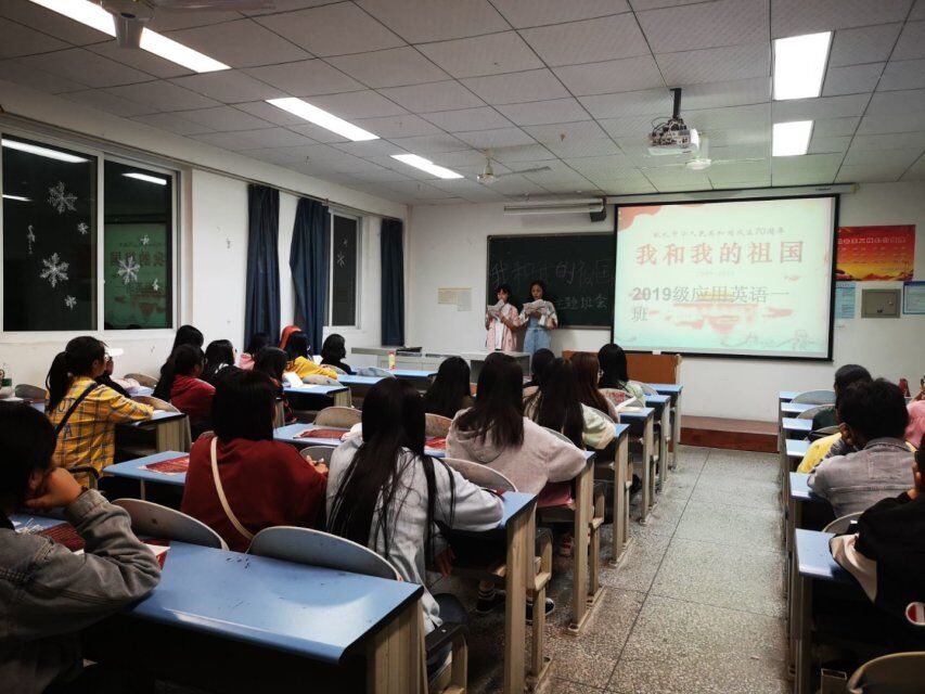 为庆祝新中国成立70周年华诞,深入了解国家发展历史,我校外语系各班于2019年10月7日晚相继开展了“我和我的祖国”主题班会。