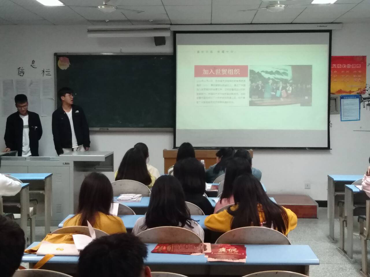 2019级应用英语1班的同学在各班导师的带领下,一同回望了新中国成立70周年来的伟大征程。主讲人通过PPT的形式简述了自新中国成立以来,中华民族历经70年的复兴之路以及中国人民几十年间创造的辉煌成就,让大家感悟良多。