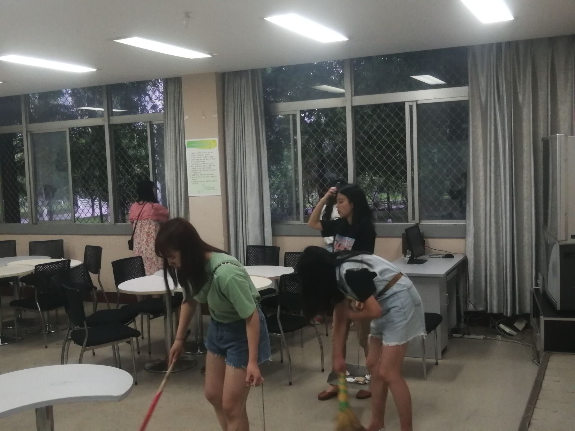 5月26日下午7.30,外语系开展了语言中心大扫除的志愿者活动。外语系入党积极分子陆续来到语言中心,领头同学让大家站队整齐的排在门口,即刻为同学们分配好了任务,大家也有头有序的忙碌了起来,有的扫地,有的拖地,有的摆放桌子,有的擦黑板,不一会就看到了一个个干净整洁的教室。经过一段时间的党课理论知识学习,同学们在思想上对党的认识得到了提升,同时也深刻地体会到只有理论与实践结合,将思想认识转化为实际行动,才能体现向党组织靠拢的决心。