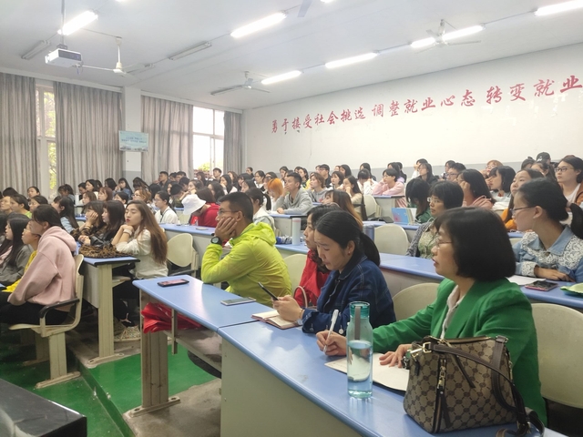 首先,郑老师讲述了互联网大赛的概念及互联网+大赛过程与参赛要求,且向大家分享了在此之前互联网+大赛中的优秀项目。其次还就如何撰写项目计划书,PPT的制作,演讲的准备工作等作出了详细解释。他表示“在如今时代,如果想发现一些别人还没发现到的项目是很难的,如果想让自己的项目在相同的项目中脱颖而出,我们必须展示出我们的不同之处,我们的特色”。