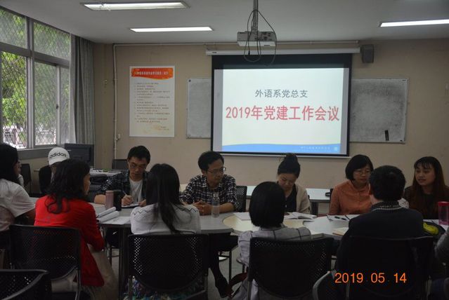 5月15日下午,外语系在语言中心多媒体教室举行党总支扩大会议暨党员发展讨论会。系党总支委员、学生支部委员、各班培养联系人、各班级导师、各班辅导员和班主任参加了本次会议。