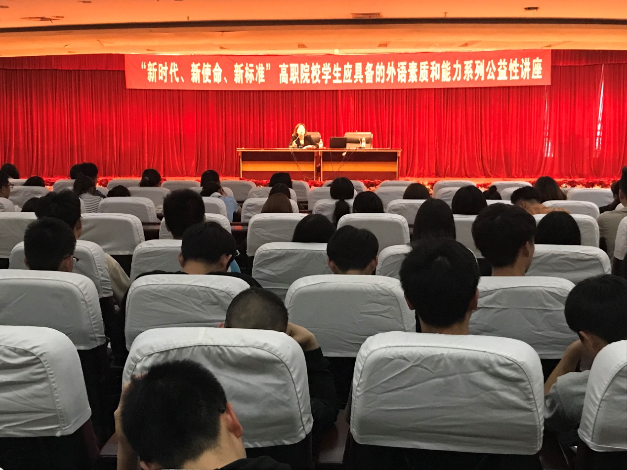 2019年4月8日、10日、11日,在图书馆多功能会议厅,三场由外语系和院团委举办,英语协会承办的高职院校学生外语素质和能力系列讲座顺利举行。本系列讲座由外语系主持工作副主任苏玉仙教授和副主任蒋显伦教授分别主持。三场讲座分别由我校外语系陈静副教授、肖君副教授和曾德琼副教授主讲;同时,外语系特邀中国外语测评中心刘杰先生和外语系蒋显伦教授到场作了关于外语学习和外语水平测试的主题演讲。