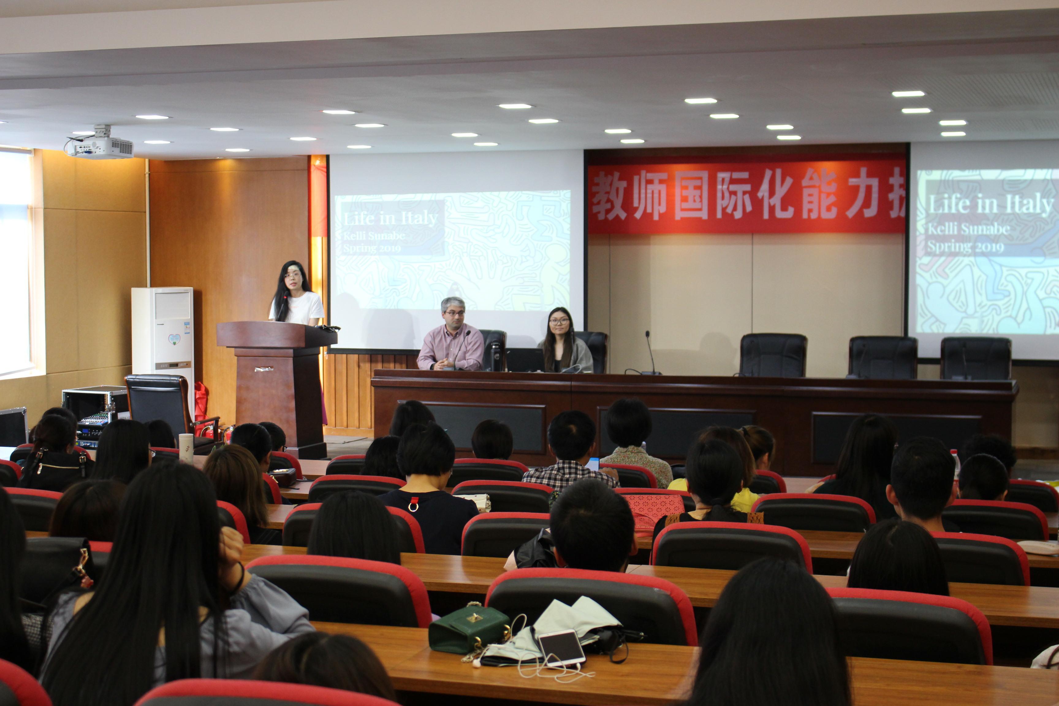 2019年4月23日下午2:40学院南区育成中心,美中友好志愿者Kelli与Adam分别以“意大利留学之旅”和“世界读书日”为题,为听众带来了一场精彩纷呈的分享交流会。