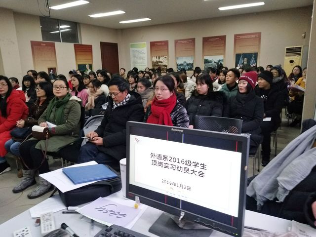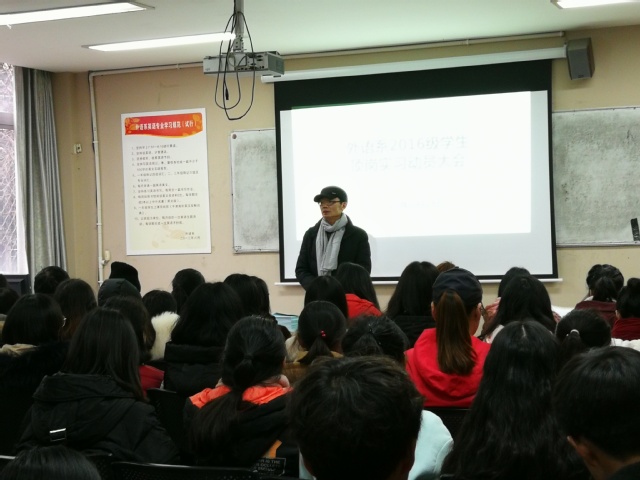 新年伊始,带着全新的气象和全新的期待,外语系16级商务英语和应用英语两个专业的同学们即将迎来顶岗实习阶段的学习。在同学们上岗之前,外语系卢书记和苏主任召集了商务英语专业和应用英语专业全体老师,在语言中心教室对16级外语系全体同学进行了顶岗实习动员。