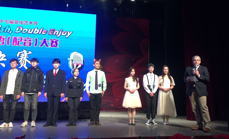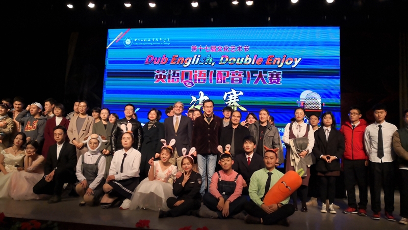 2018年12月1日下午三点,我校第十七届文化艺术节英语口语(配音)大赛决赛在二教演播厅举行。本次大赛由外语系承办,教务处、团委、学生处领导及各系部领导、外籍教师及300余名学生出席并观看了比赛。