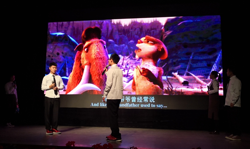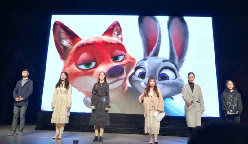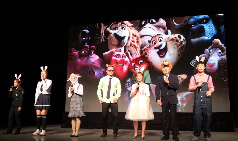 比赛由来自学校九个系选送的九支参赛队伍参加。他们依次上台表演,用标准的英语和奇妙的声音模仿给我们带了不同风格但个个都精彩纷呈的一场英语口语的视听盛宴。在音乐剧《音乐之声》中同学们悠扬的歌声婉转动听;在《神偷奶爸》《疯狂动物城》《马达加斯加》和《头脑特工队》等经典英文动画片配音表演中,参赛同学对人物形象和声音的模仿惟妙惟肖、让人忍俊不禁,在现场掀起了一次又一次高潮; 更有同学致敬舞台经典剧作《傲慢与偏见》,生动再现了电影中的感人场景。
