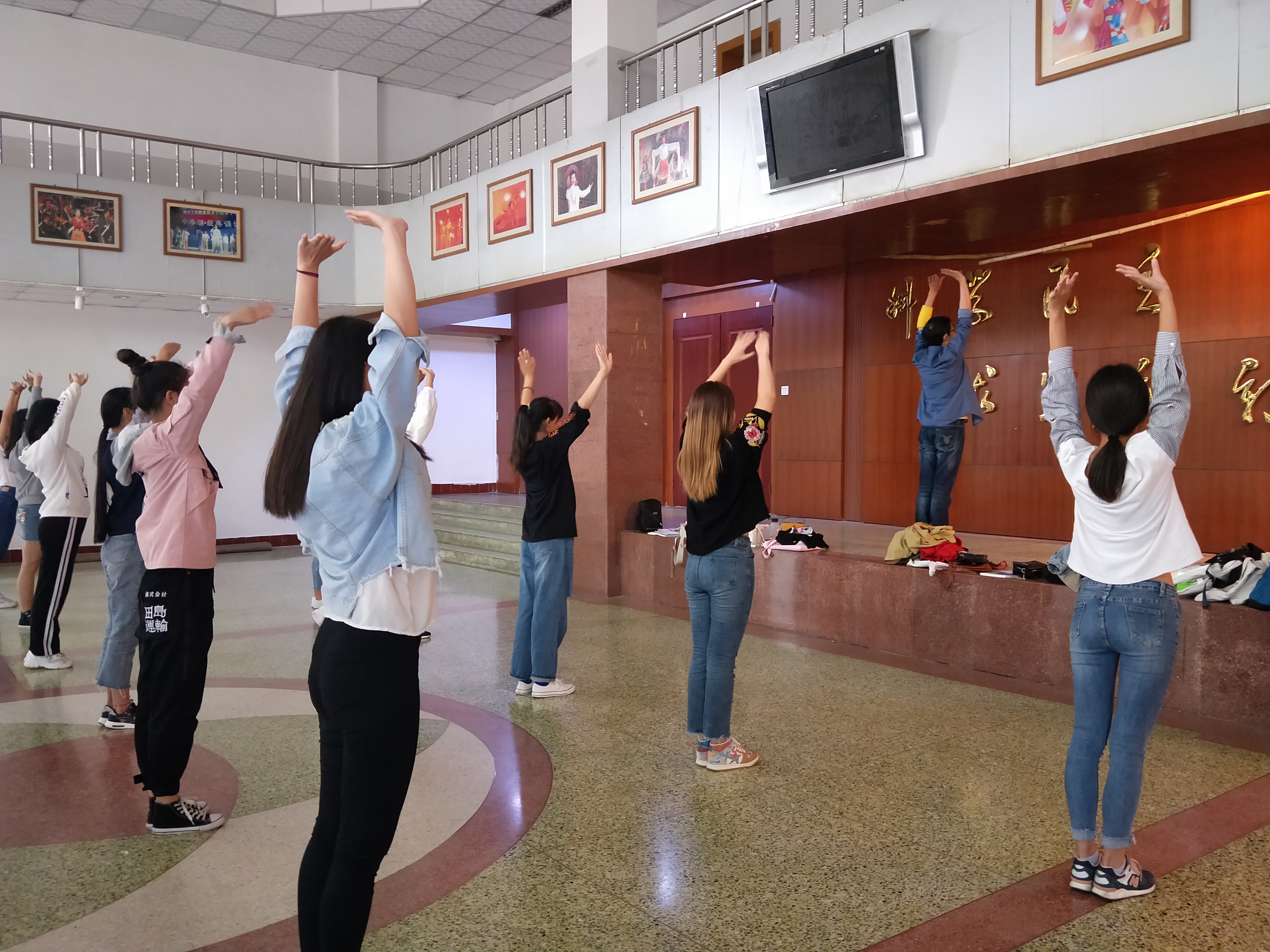 9月27日下午,报名参加舞蹈大赛的同学们早早来到2教演播厅外,按班级站队,系党总支卢书记不辞辛劳亲自教授舞蹈动作,严格把关,层层筛选。入围者产生后,卢书记和唐老师给予了所有参赛者诚挚的鼓励与关怀。