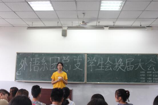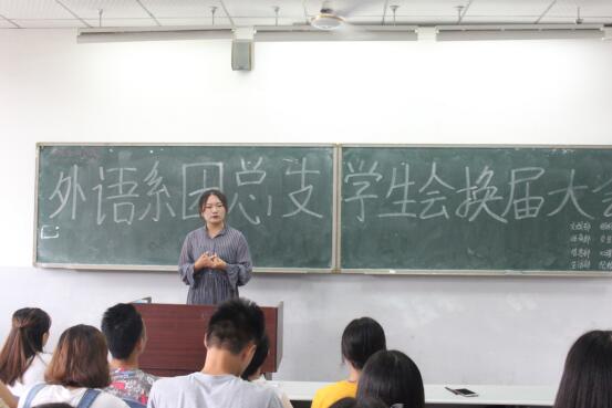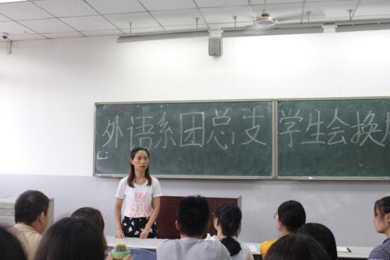 7月4日下午外语系团总支学生分会换届大会顺利举行,参加本次换届大会的有外语系党总支书记卢敏老师、外语系团总支书记唐蕊老师、16级学生会主席团成员、各部门部长以及17级学生会所有干事。