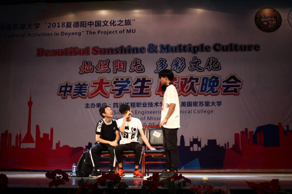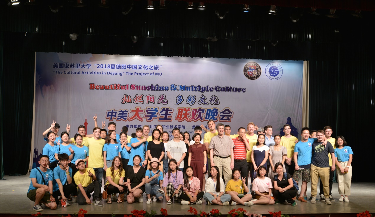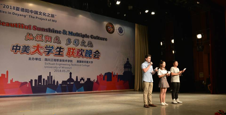 5月29日19:30于二教演播厅中美大学生联欢晚会如期举行。本次晚会邀请到了学院副院长郑辅春、副院长向桢、学工部、教务处等部门领导出席。我系全体师生、密苏里大学师生及全院其他各系部分师生参加。 在热烈的掌声和欢呼声中,外语系副主任苏玉仙老师登台致辞,向来自美国密苏里大学的师生表示欢迎,衷心祝愿两校友谊之树常青。
