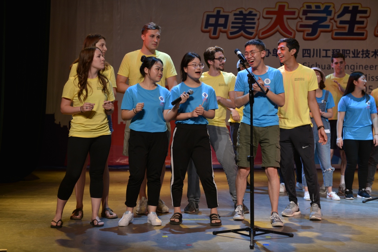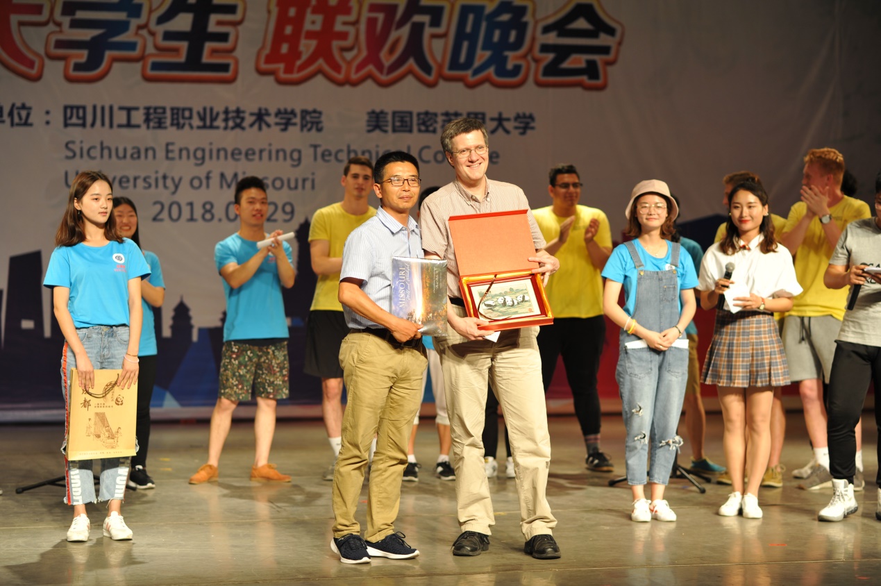 一首中美大学生同台用双语合唱的歌曲《相亲相爱》,将整场晚会的气氛推向高潮。伴随着激情洋溢的歌声,学院副院长向桢与美国密苏里大学Michael教授互赠礼物,共同期许中美两校友谊长存!至此,中美大学生联欢晚会圆满落下帷幕。