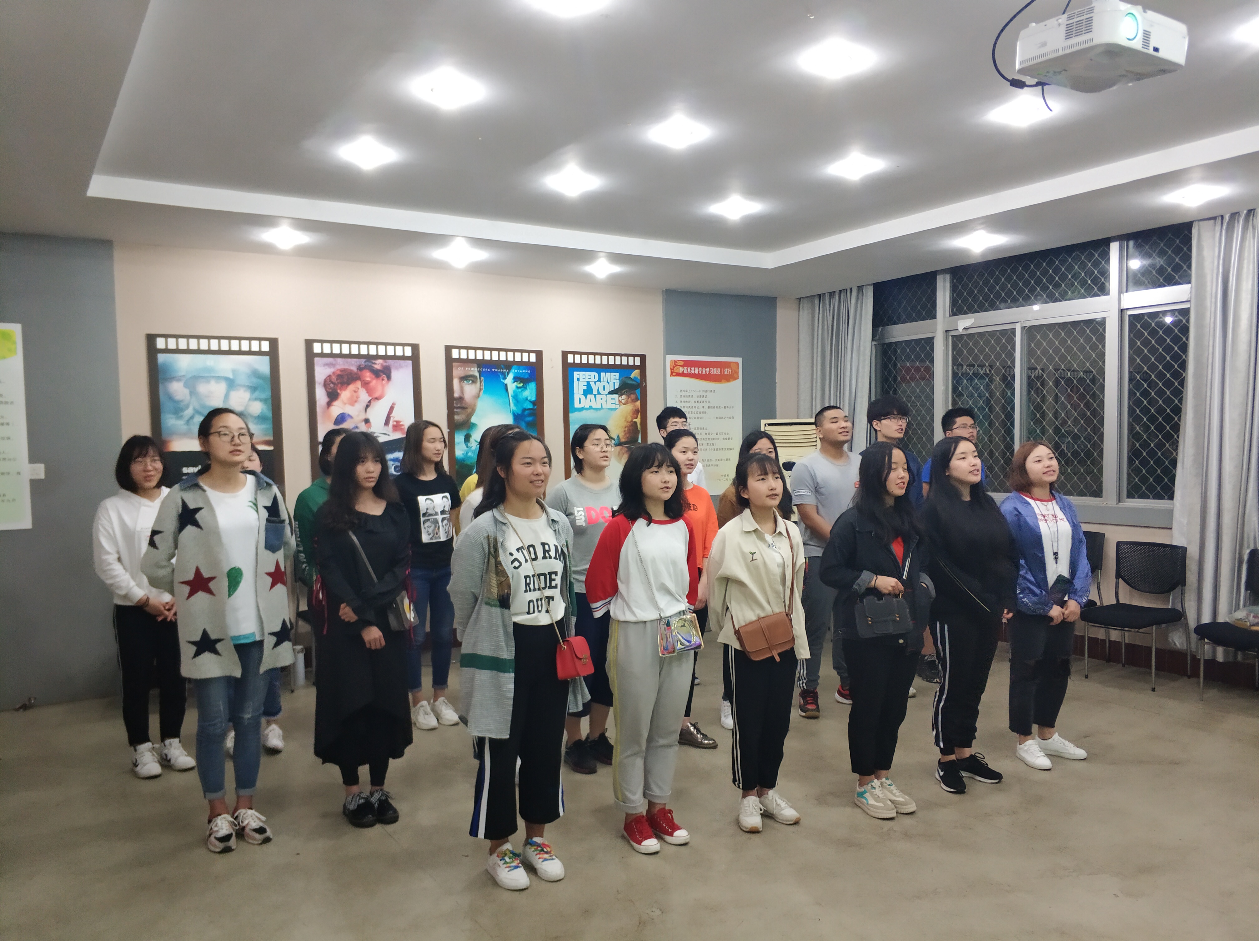 四月初,外语系开始了五四合唱的排练,在老师以及学生干部的悉心指导下,于二教语言中心进行排练。我系本次五四合唱的歌曲是《红旗飘飘》,同学们嘹亮的歌声回荡在教室里,唤起了大家慷慨报国的凌云壮志。