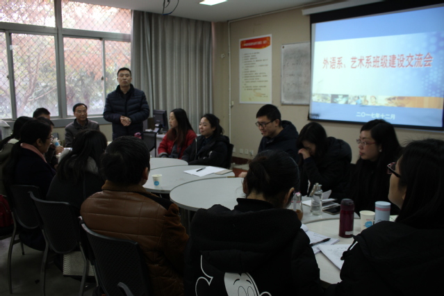 2017年12月19日下午4:30我系与艺术系在语言中心开展了班级建设交流会。会议由艺术系党总支书记余立勤主持,学生工作部部长龙斌、全体辅导员班主任及班级导师参加了本次交流会。柏菁、张金玉及许妍媛三位老师进行了经验分享。