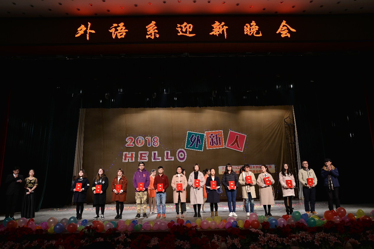为迎接新的一年到来,由外语系团总支学生分会承办的主题为“2018 HELLO外新人”新年晚会于12月26日晚在二教演播厅隆重举行,学院党委宣传部、学工部等相关部门领导及外语系全体师生参加了本次晚会。