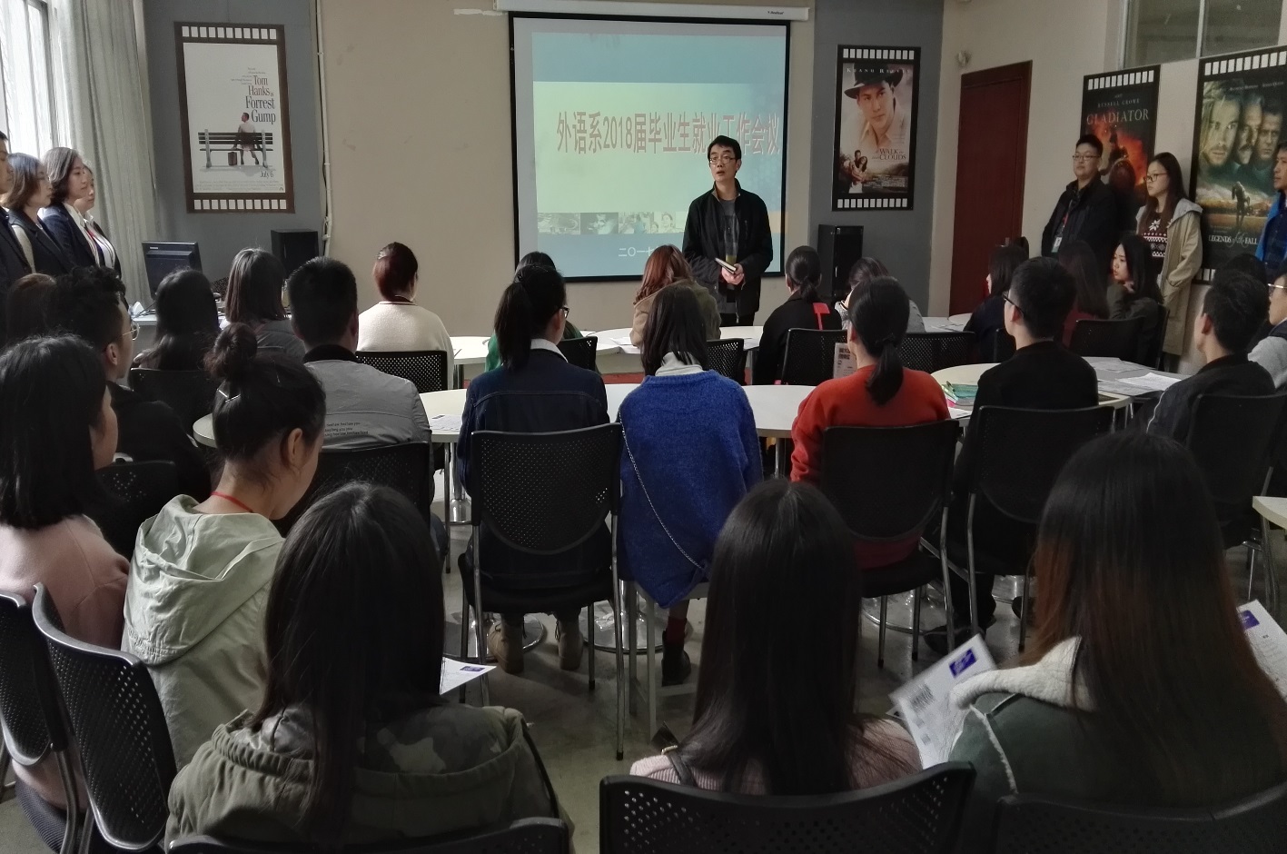 今天下午三点我系在语言中心召开了2018届毕业生就业工作会议。会上,系党总支卢书记就目前就业形势和18届毕业生就业情况进行了分析讲解,要求我们的毕业生认清就业形势,端正就业心态,积极主动全面的了解招聘单位,希望每一位同学都能顺利获得一份满意的工作岗位。随后,系部安排了智航教育集团为我们的毕业生进行了宣讲,全面落实我系18届毕业生的就业工作。