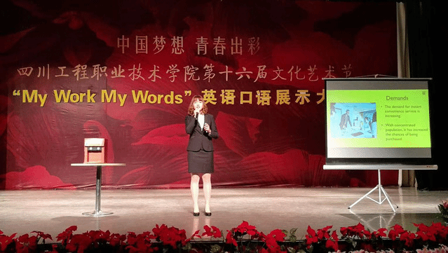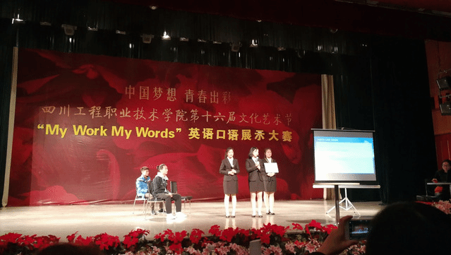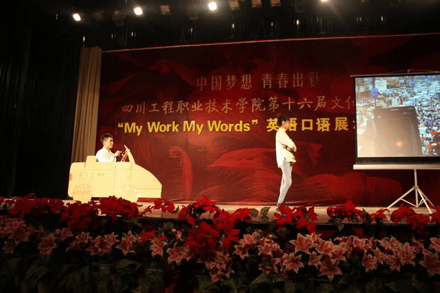 11月23日晚,由外语系、院团委承办的学院第十六届文化艺术节“My Work, My Words”英语口语展示大赛在二教演艺厅拉开帷幕。外事办、旅游管理系、经济管理系、建筑工程系、电气信息工程系等部门领导及外籍教师出席并观看比赛。
