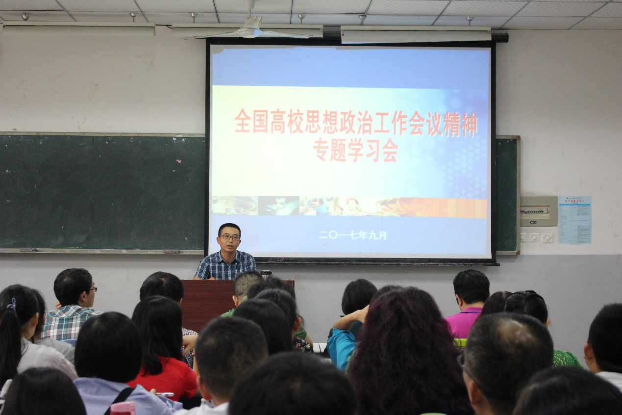 2017年9月19日下午在学院三教A112教室外语系开展了全国高校思想政治工作会议精神专题学习会。