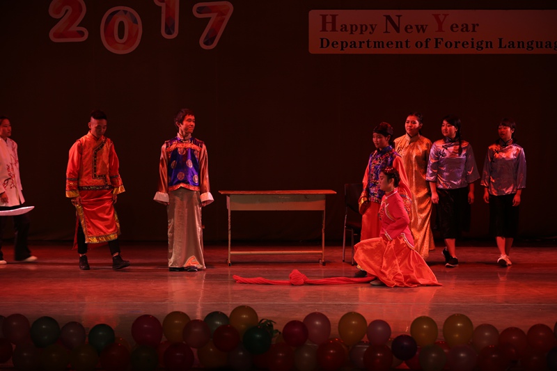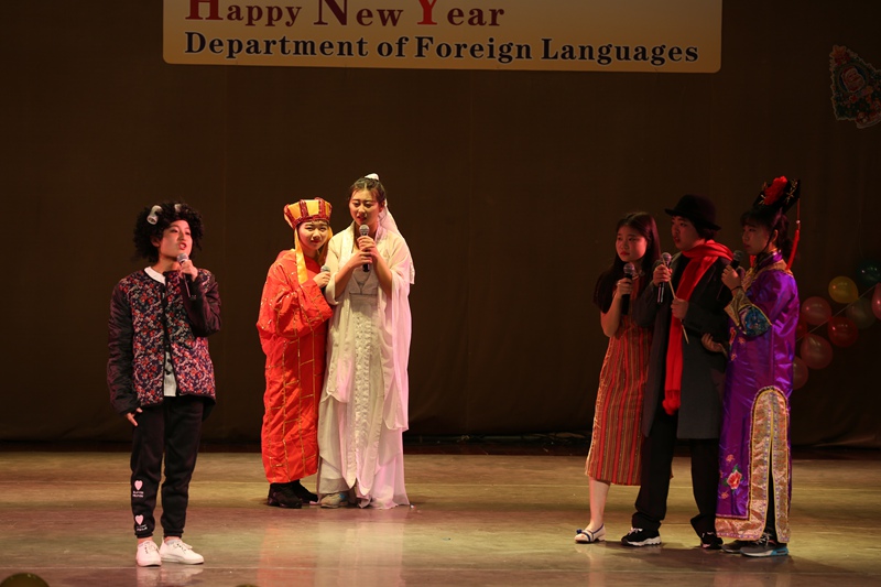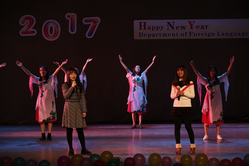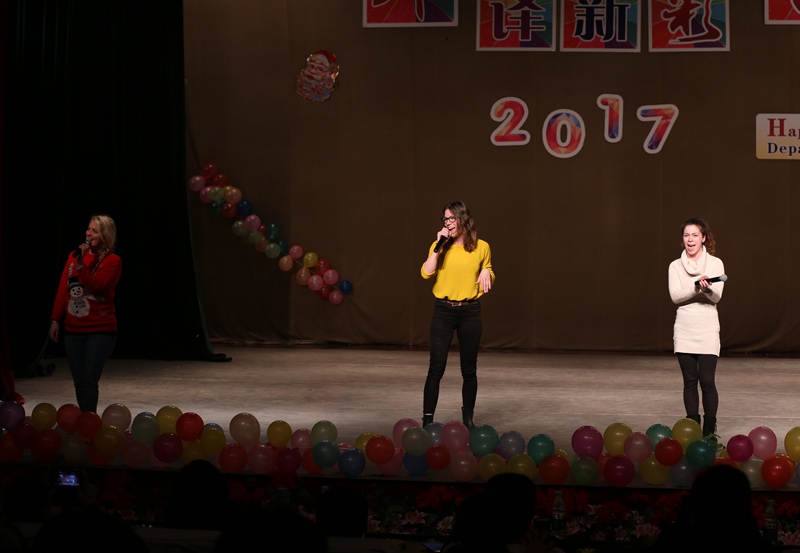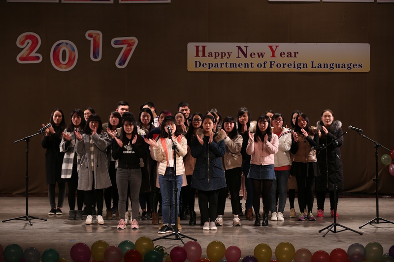 欢声笑语贺新春,欢聚一堂迎新年。2016年12月22日晚,外语系在二教演播厅成功举办迎新晚会,学院党委宣传部、党委学生工作部负责人及外语系党政领导、全体中外教师参加晚会。